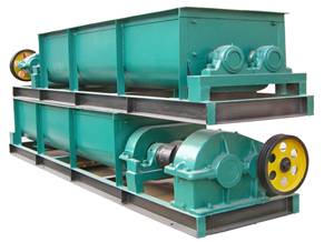 雙軸攪拌機是針對散狀物料的混合攪拌,采用螺旋推進的原理,將進入攪拌機的混合物攪拌均勻后送到下道工序。具有攪拌能力強,給料連續均勻的特點,攪拌葉片為可自由拆裝式,材質為耐磨合金鋼。本機操作簡單,維修方便,特別適合型煤、耐火材料等松散物料的混合攪拌。